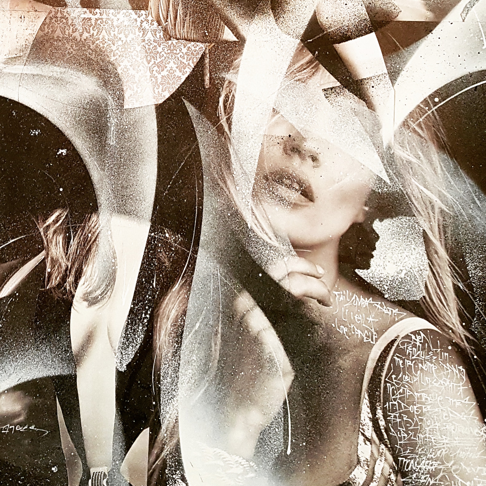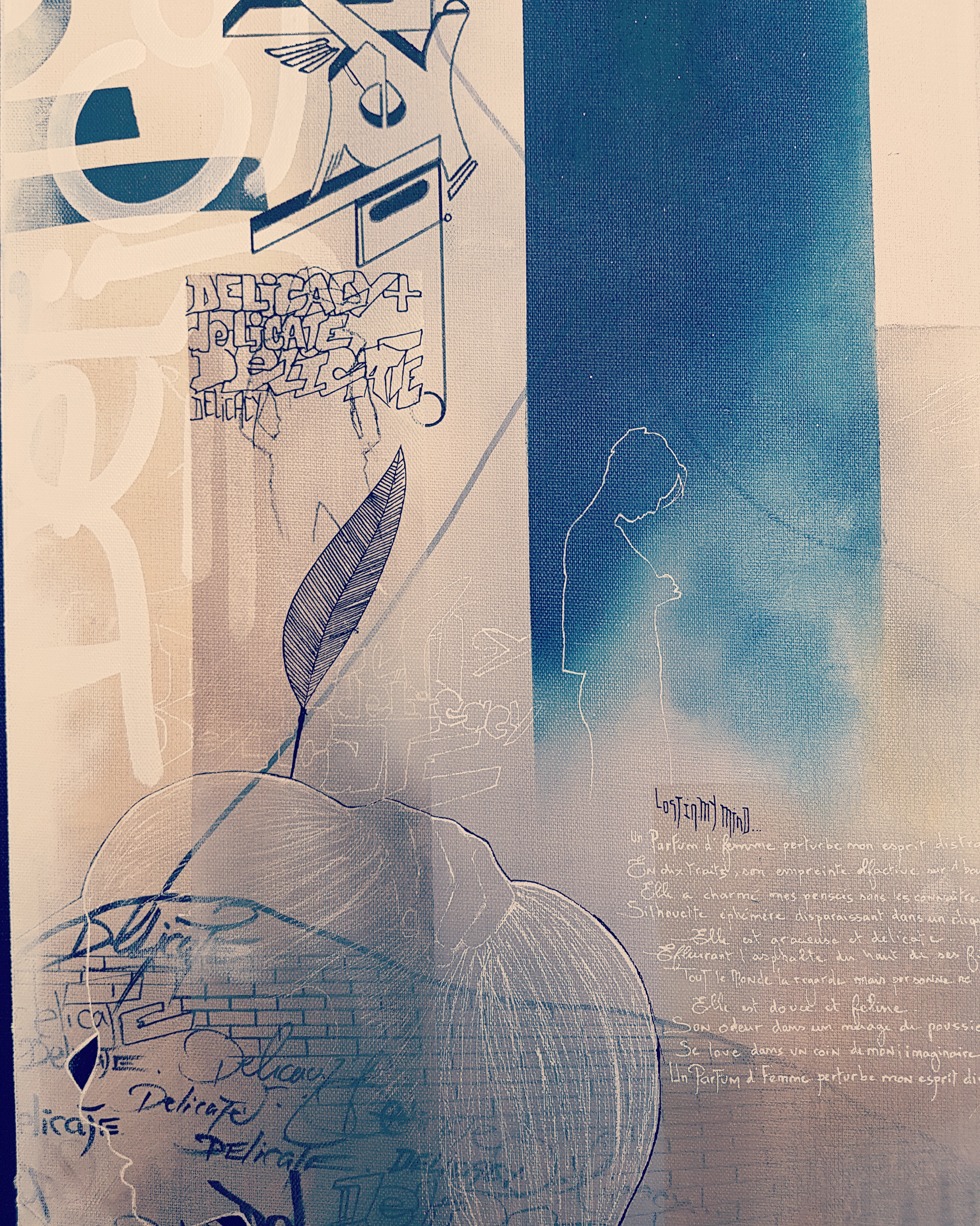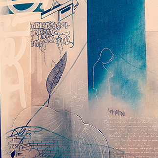 J’ai toujours beaucoup dessiné et ce dès mon plus jeune âge. La découverte de la culture Hip Hop durant mon adolescence m’a amené sur les chemins du graffiti, devenu une passion quelques années plus tard. La vie et ses rencontres m’ont progressivement extrait des codes de cette discipline pour agrémenter mon travail avec d’autres influences ou techniques telles que la peinture à l’huile,la photo, la feuille d’or,le bodypainting, le collage ou la calligraphie, avec une importance croissante de l’écriture.
